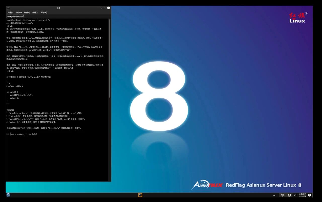 2025年2月14日,红旗操作系统宣布成功部署上线DeepSeek大模型。