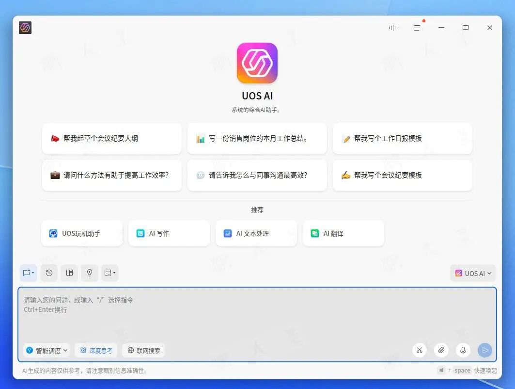 在桌面功能中,UOS AI的出现值得单独提一下。这意味着统信桌面系统正在逐步从“传统桌面操作系统”向“智能化桌面平台”演进。虽然不同场景下的应用深度还要看后续生态发展,但从产品方向来看,V25已经明确把AI能力纳入桌面系统的重要组成部分。