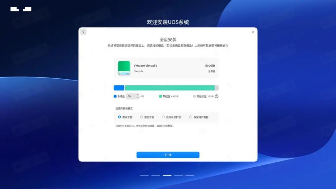 从整体体验来看,安装逻辑已经比较成熟,基本延续了UOS桌面系统一贯的图形化安装风格。
