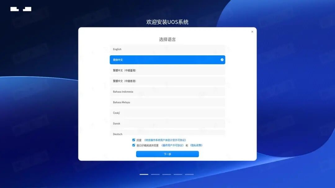 统信UOS V25专业版可通过官方专业版下载页面获取镜像。系统启动后,在安装菜单中选择:Install UOS desktop 25,接着按向导完成安装即可。安装流程整体比较流畅,主要步骤包括: