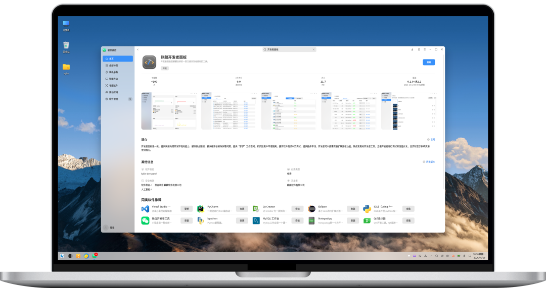 麒麟开发者面板现已上架软件商店,银河麒麟桌面操作系统V10 SP1 2403及以上版本可安装使用,快来体验吧!