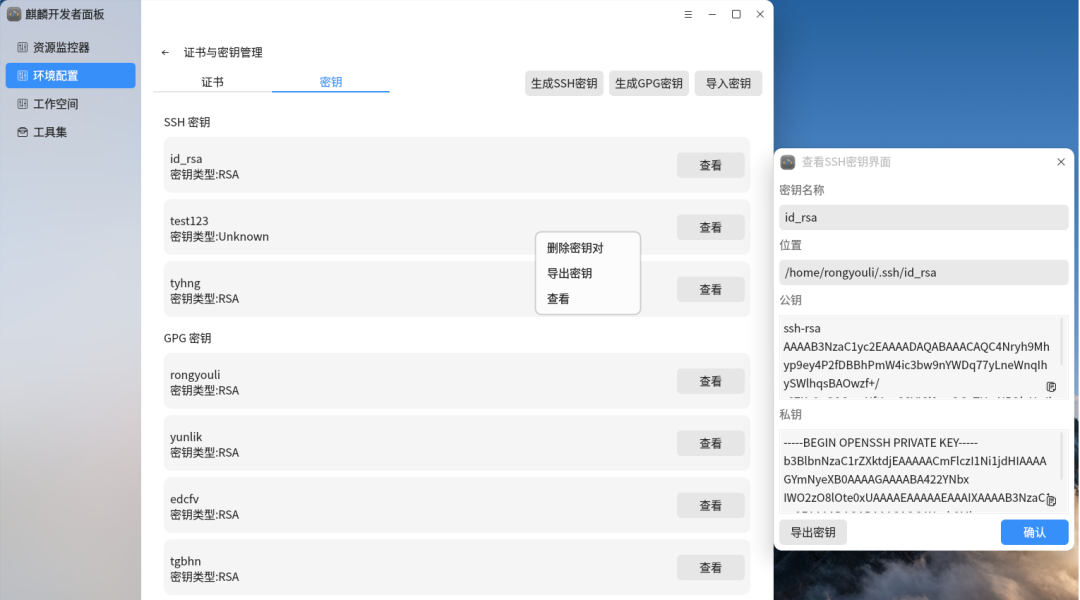• 密钥管理:一站式管理SSH与GPG密钥: