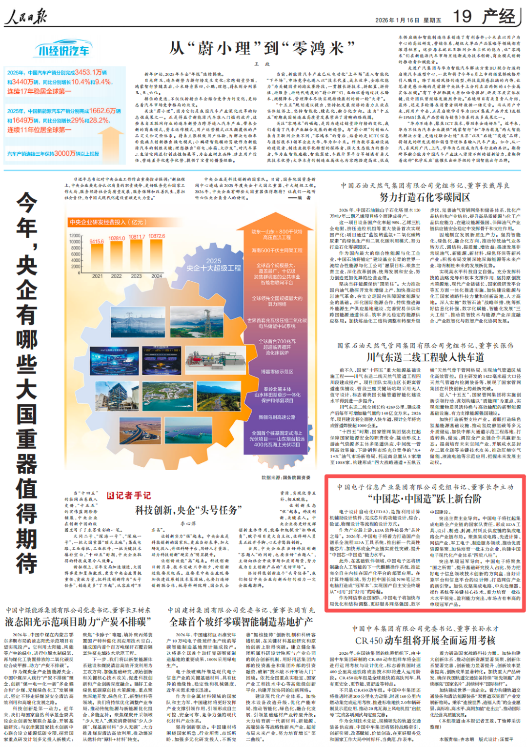 中央企业是科技创新的国家队。近日,人民日报推出报道《今年,央企有哪些大国重器值得期待》,刊发中国电子党组书记、董事长李立功专访——《“中国芯·中国造”跃上新台阶》。全文分享如下。